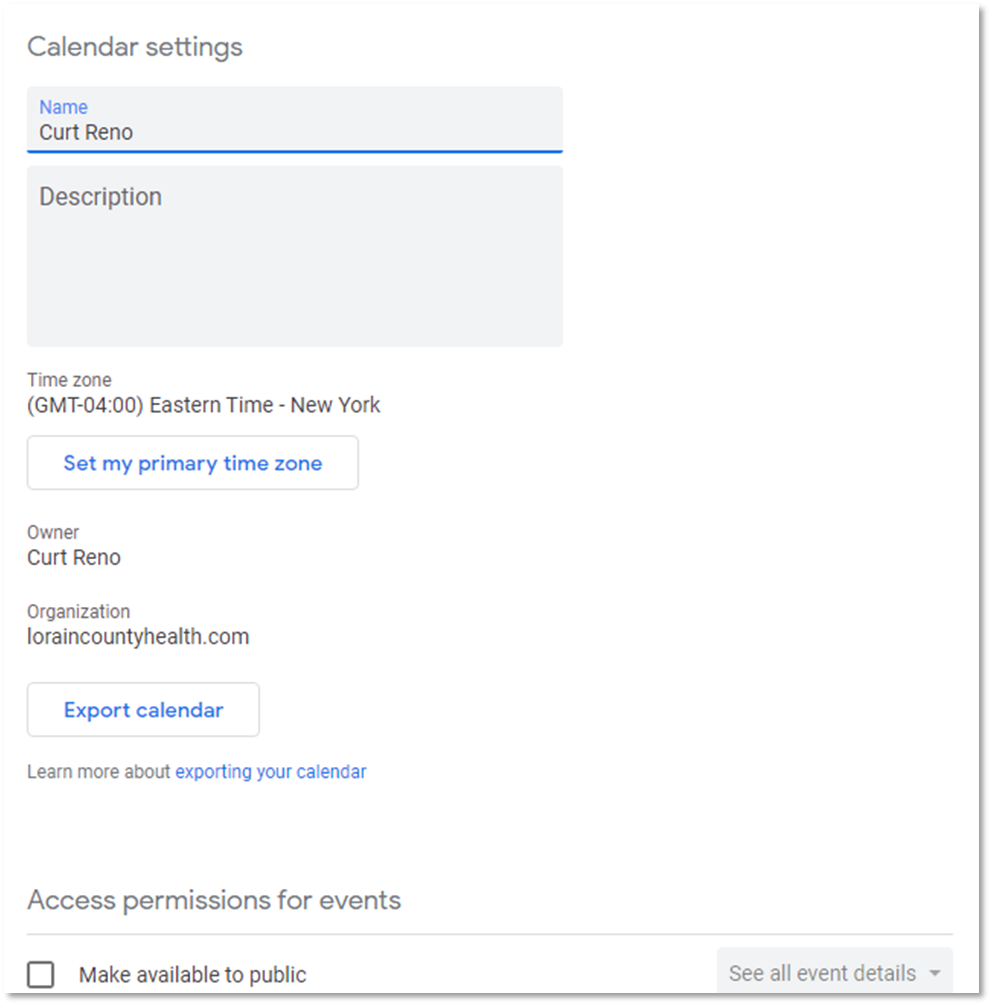 By default, your ‘free/busy’ calendar information is shared with everyone in the LCPH domain. You can share additional information with everyone or just specific employees. Sharing ‘free/busy’ availability to everyone in LCPH allows staff to easily schedule meetings with you.