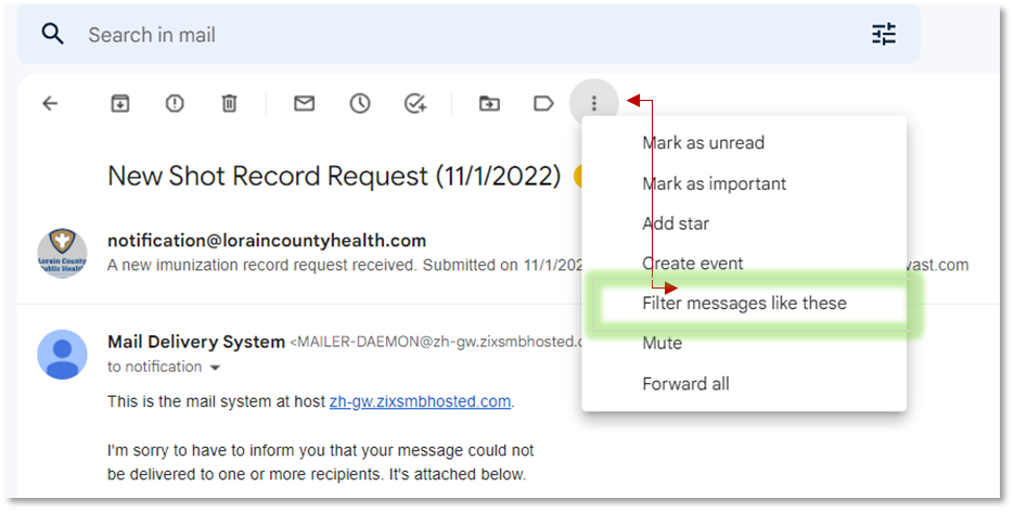 Choose the email that you want to block future messages from. The quickest way to create a block filter is to select a message from a sender that you want to be blocked. Open the message, click the "More" button, and then select "Filter messages like these". The Filter window will appear at the top of the screen with the sender's address in the "From field"